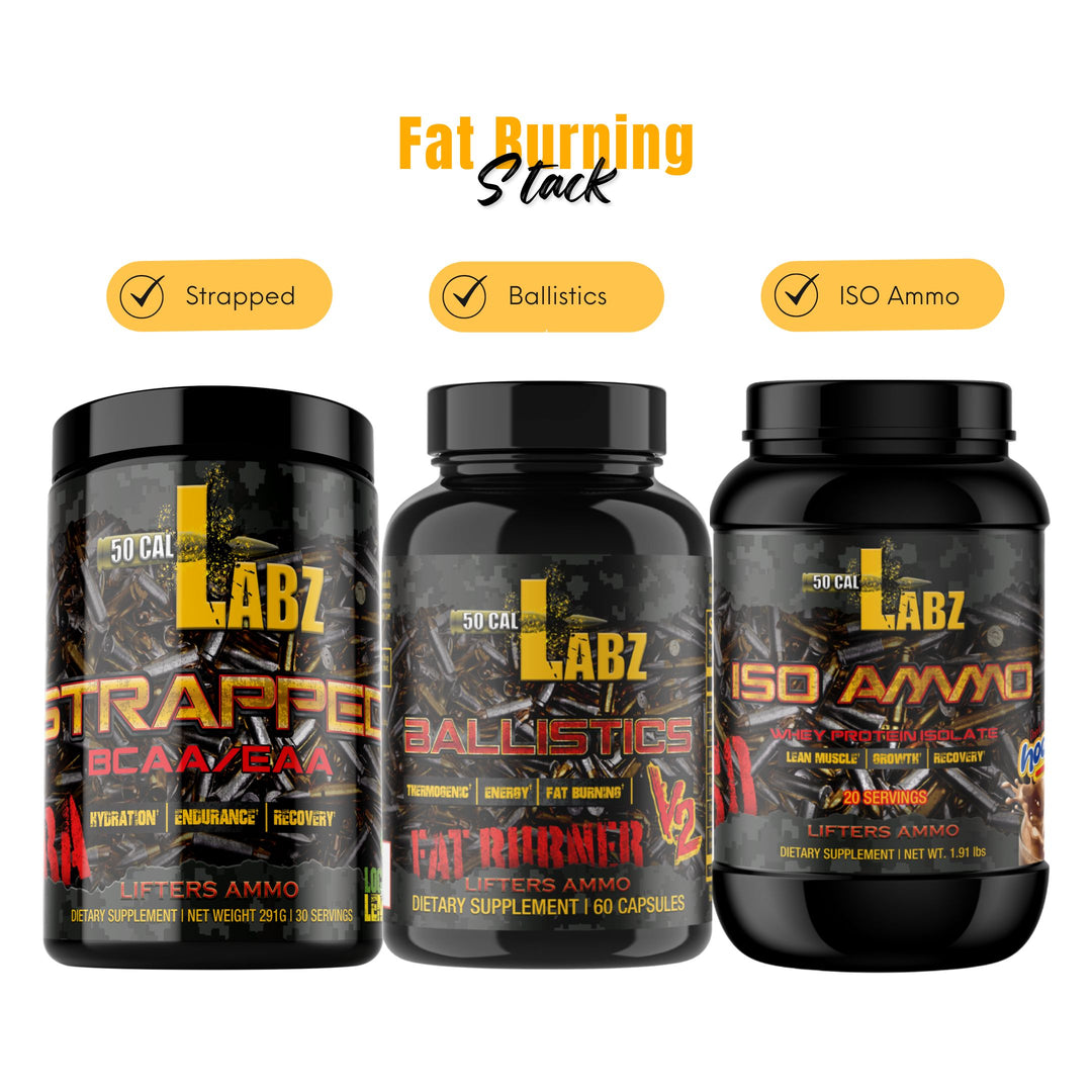Introducing our Fat Burning Stack- a powerful combination of our three premium products designed to take your fitness journey to unparalleled heights. We have carefully curated this stack to help you unleash the potential of your body and achieve the sculpted physique you've always desired. Fuel your ambition- conquer every workout and experience the transformation you deserve with our powerful trio - BALLISTICS V2- STRAPPED- and ISO AMMO.